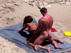 Nude Beach – Hot MMF Threesome – Huge Audience