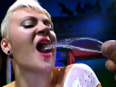 Funky blonde girl hardcore bukkake drinks cum and piss