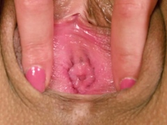 Adorable sex kitten is showing her gaped yummy muff in close