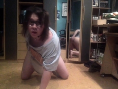 Leotard Sissy Slut Fucking her tight Boy Cunt with plug