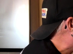 Gloryhole mature DILF bareback nailed after giving bj