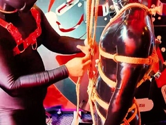 BDSM leather harness hunk assfisted and cocksucked by jock