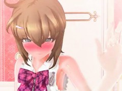 Busty hentai coed fingering pussy and squirting cum