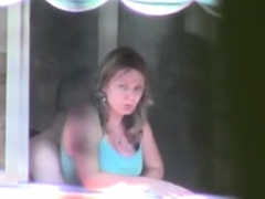 NOT My kinky sister masturbates at her dek. Hidden cam