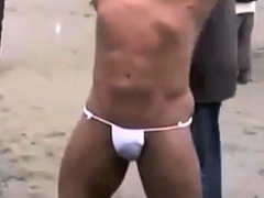 Muscled Asian Stud Bares Almost All at the Beach
