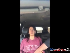 Very cute chick gets fingered to orgasm in back seat
