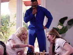Busty ebony shemale throated and analed her stepbrother