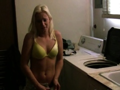 Romantic blonde maiden with great tits is masturbating