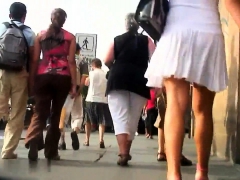 Voyeur scenes with leggy gal upskirt
